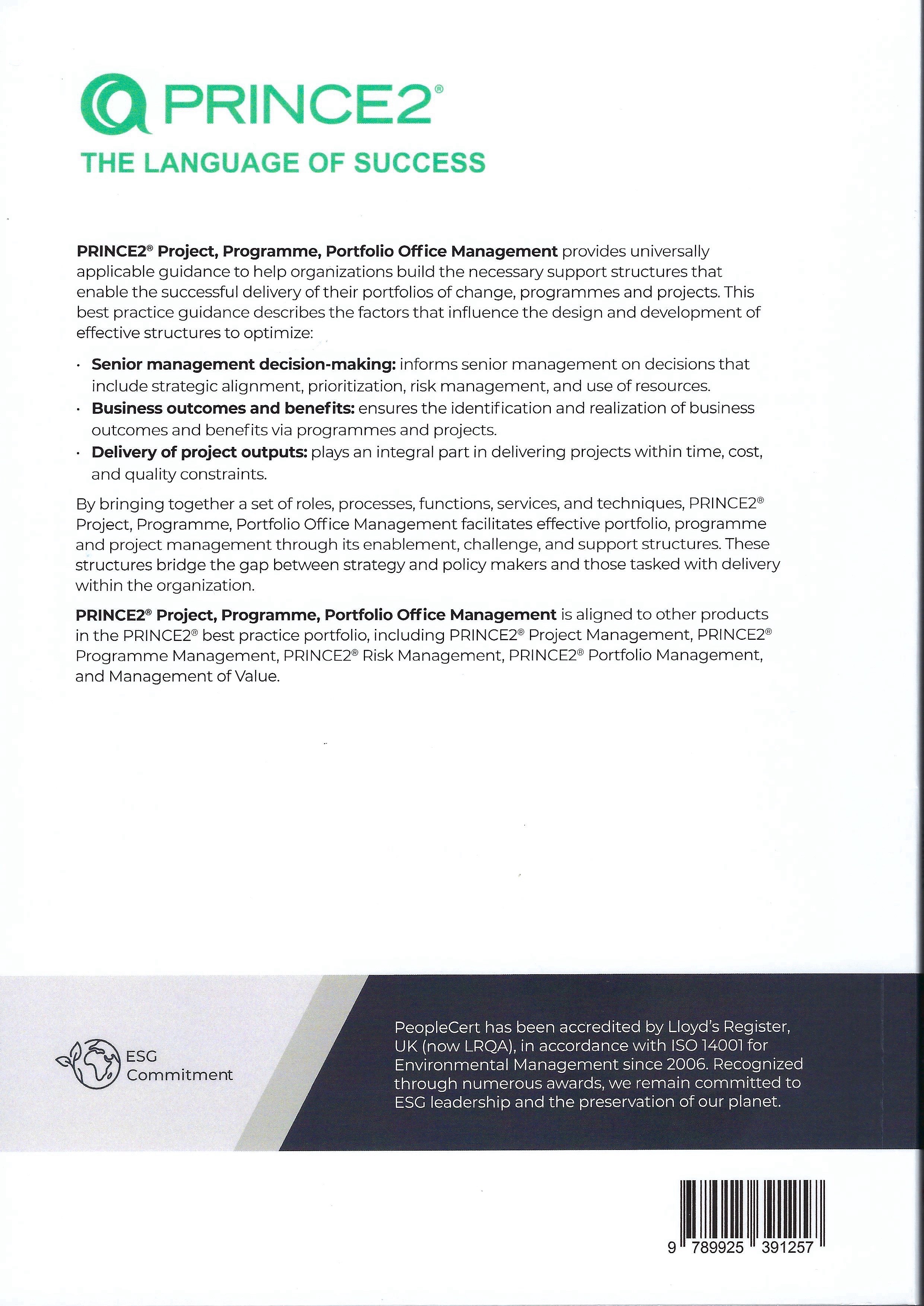 PRINCE2® Project, Programme, Portfolio Office Management provides a universally applicable guidance that combines a set of principles, processes and techniques that facilitate effective portfolio, programme and project management through enablement, challenge and support structures.