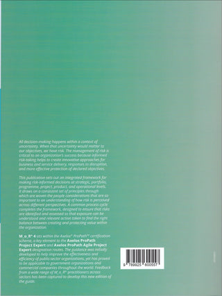 The Management of Risk (M_o_R) framework was originally developed in 2002 with the main intention being to assist organisations in assessing risks associated with decision making. Over time, this framework has developed and become globally known, and is recognised in organisations in the private, public and government sectors.
